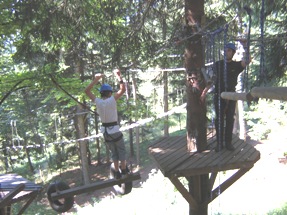 | Am Anfang mussten wir unsere Ängste noch überwinden, doch die anfänglichen Unsicherheiten verschwanden schnell und schon hangelten, kletterten oder balancierten wir von Baum zu Baum. | |