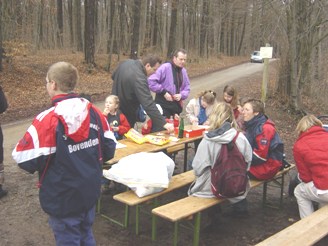 Der Abschluss fand auf dem Parkplatz an der Plesse statt. Dort verkaufte die JF- Bovenden Bratwürstchen und Getränke. Leider spielte das Wetter an diesem Nachmittag nicht mit, so daß nur sehr wenige Familien dieser Einladung folgten.